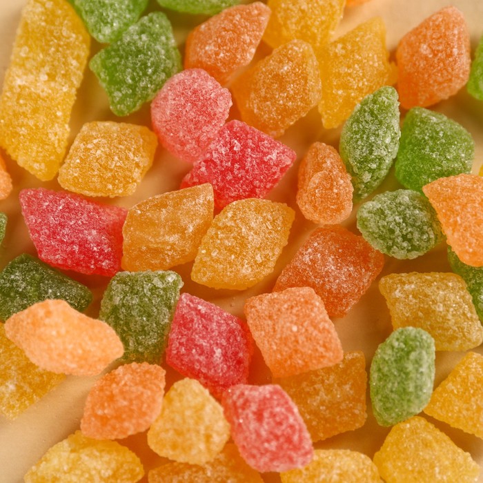 Состав: сахар белый кристаллический, патока крахмальная, регулятор кислотности - лимонная кислота (Е330), ароматизаторы: "Смородина", "Малина", "Абрикос", "Лимон", "Яблоко", красители (Е102, Е110, Е129).