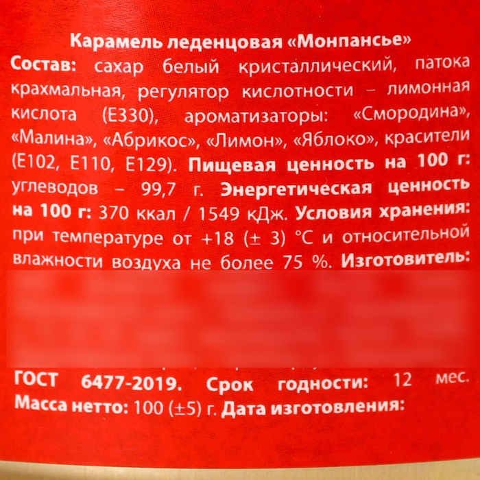 Монпансье «Сладостей» в консервной банке, 100 г. — Характеристики