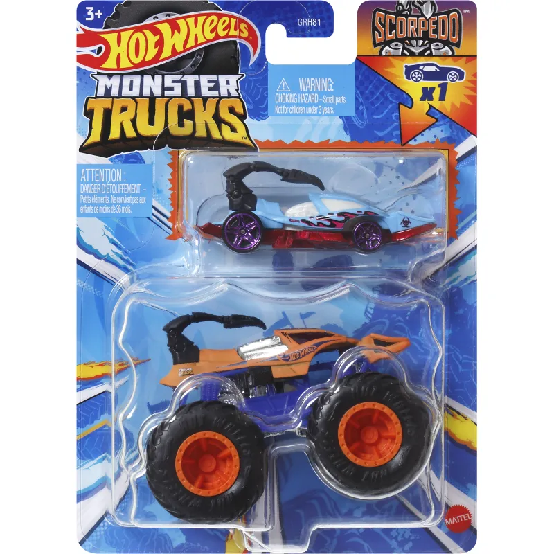 Гигантский монстр-трак Hot Wheels с огромными колесами – это зрелище, которое не оставит равнодушным. В комплекте идет тематическая маленькая машинка Hot Wheels die cast. Доступно несколько различных наборов.