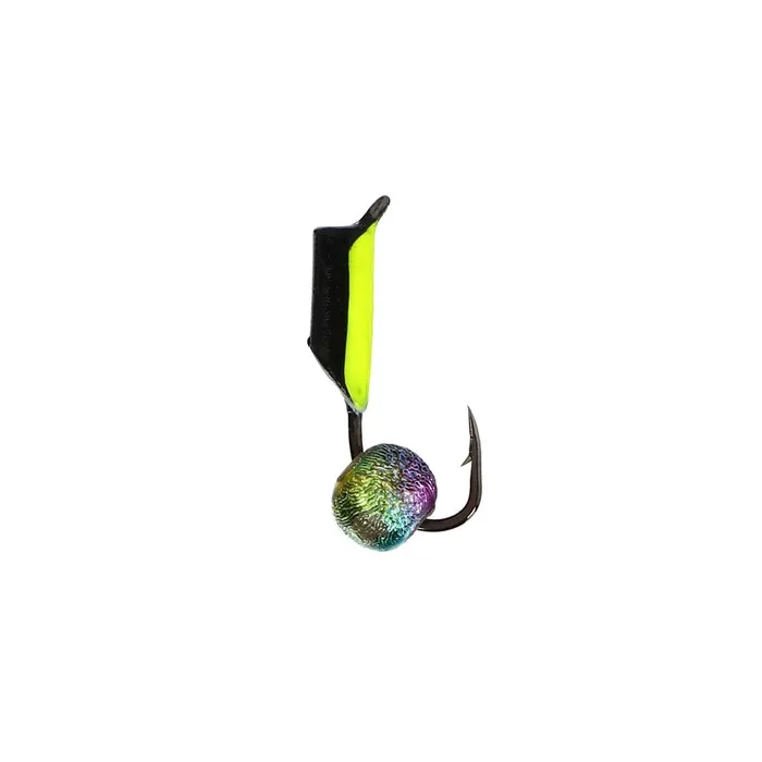 Мормышка Столбик чёрный, лайм брюшко + шар радуга, вес 0.5 г