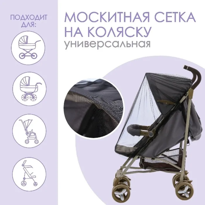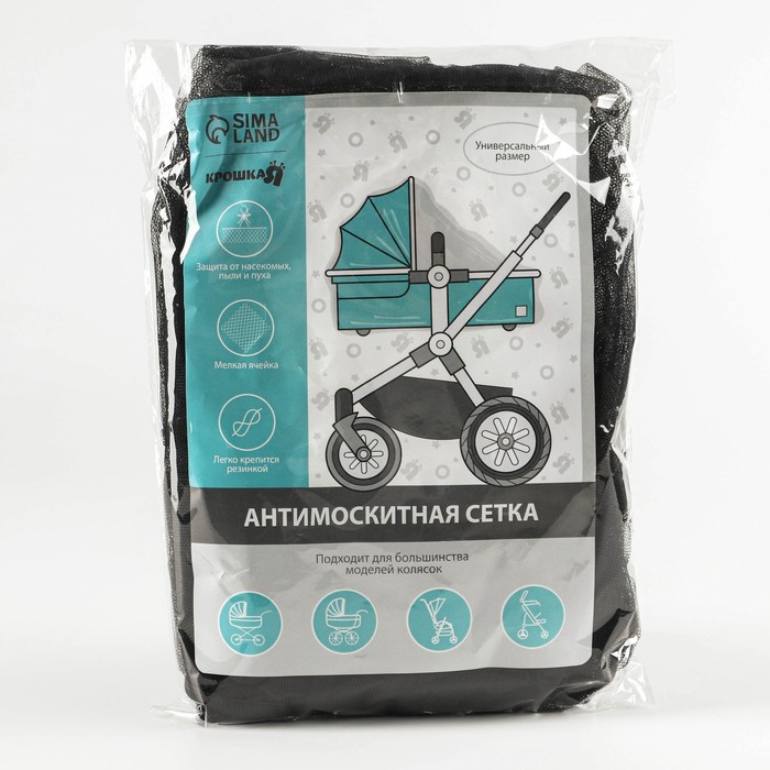 Москитная сетка имеет универсальный размер, ее можно надеть на прогулочную коляску, коляску-люльку и даже автокресло.