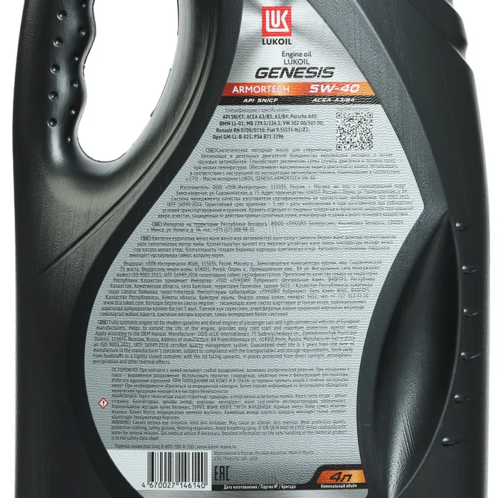 Моторное масло Лукойл Genesis Armortech=5W-40, API SN/CF, синтетическое, 4 л 3148675 — Характеристики