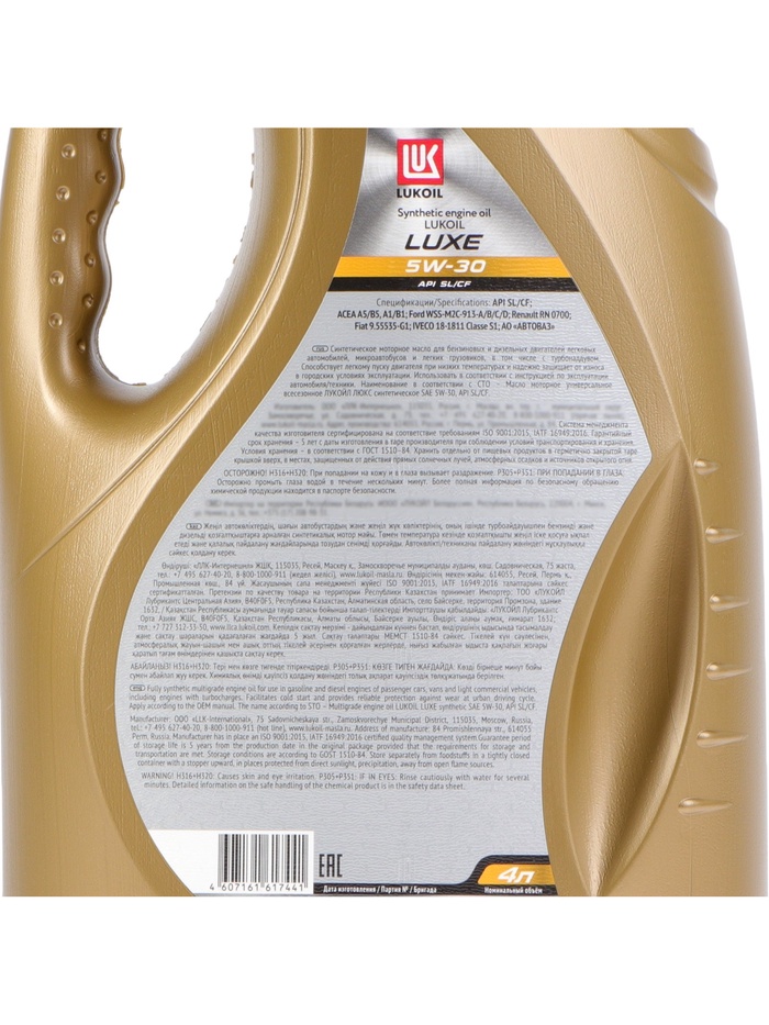 Моторное масло Лукойл Люкс 5W-30, API SL/CF, синтетическое, 4 л 196256 — Характеристики