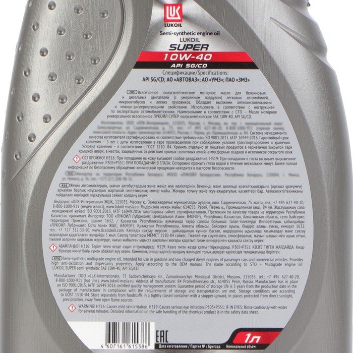 Моторное масло Лукойл Супер 10W-40, API SG/CD, полусинтетическое, 1 л 19191 — Характеристики