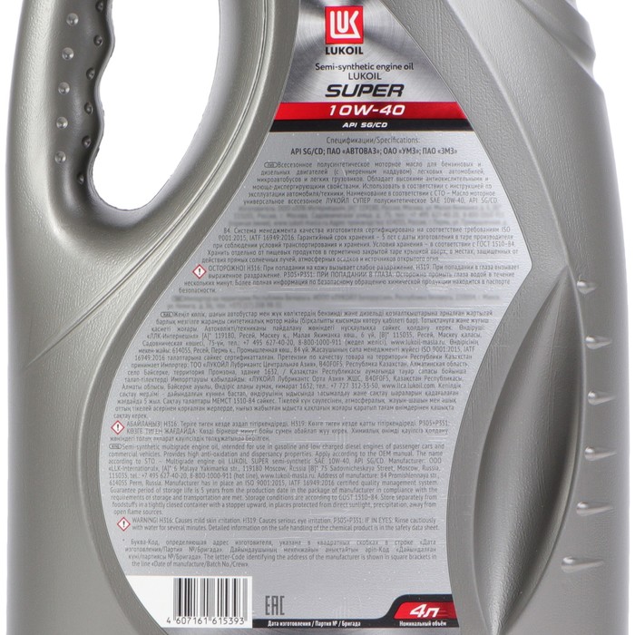 Моторное масло Лукойл Супер 10W-40, API SG/CD, полусинтетическое, 4 л 19192 — Характеристики