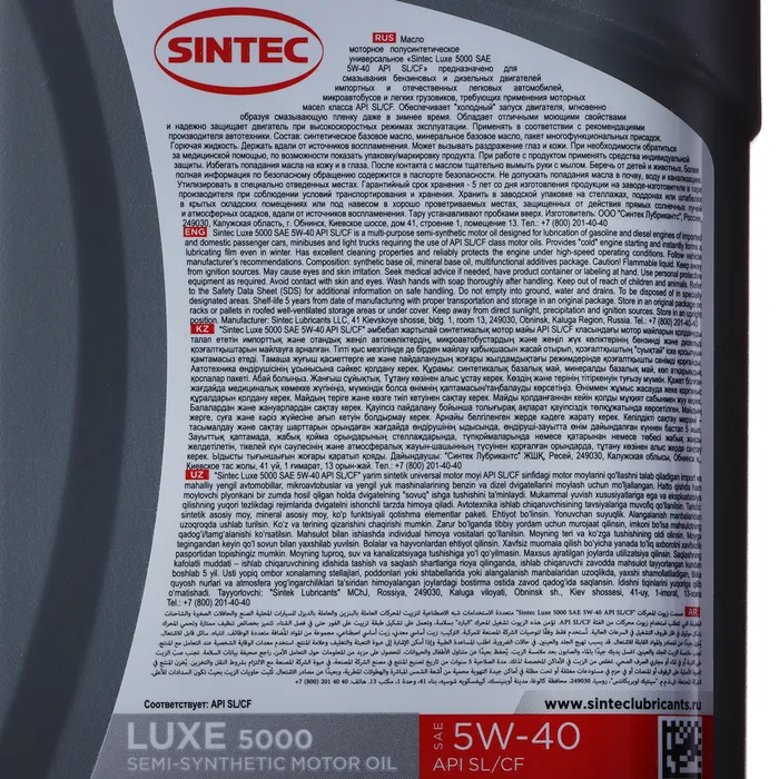Моторное масло Sintec Luxe 5W-40, п/синтетическое, 1 л — Характеристики