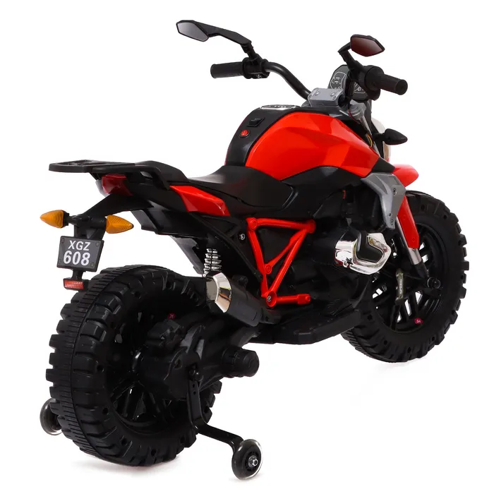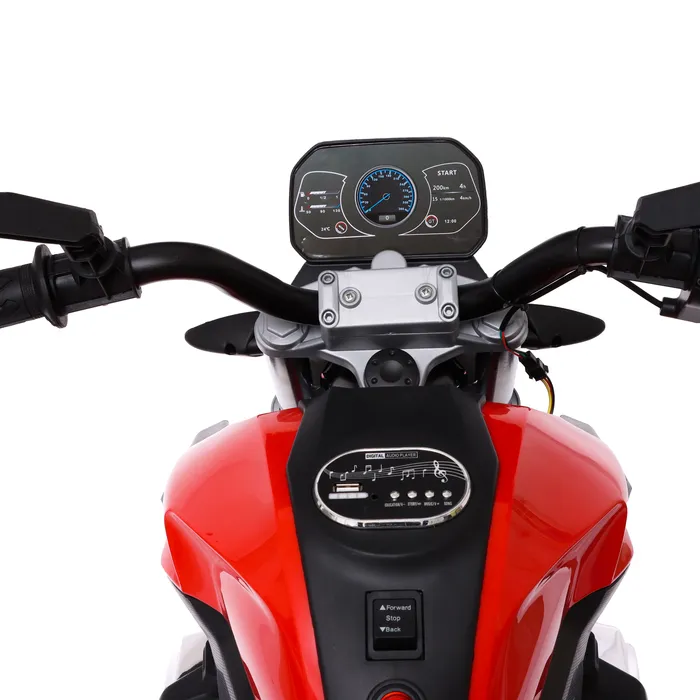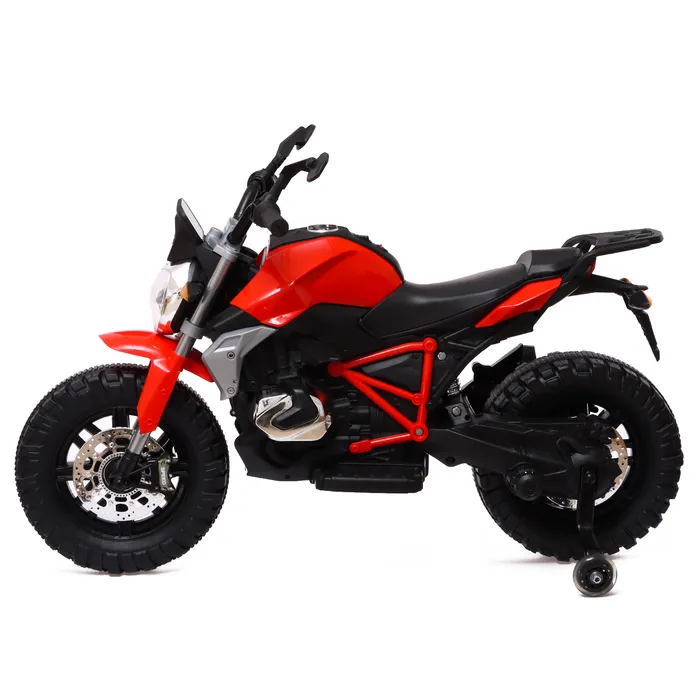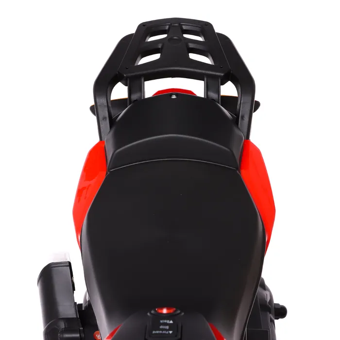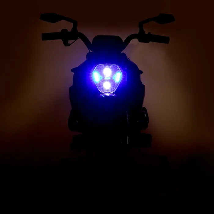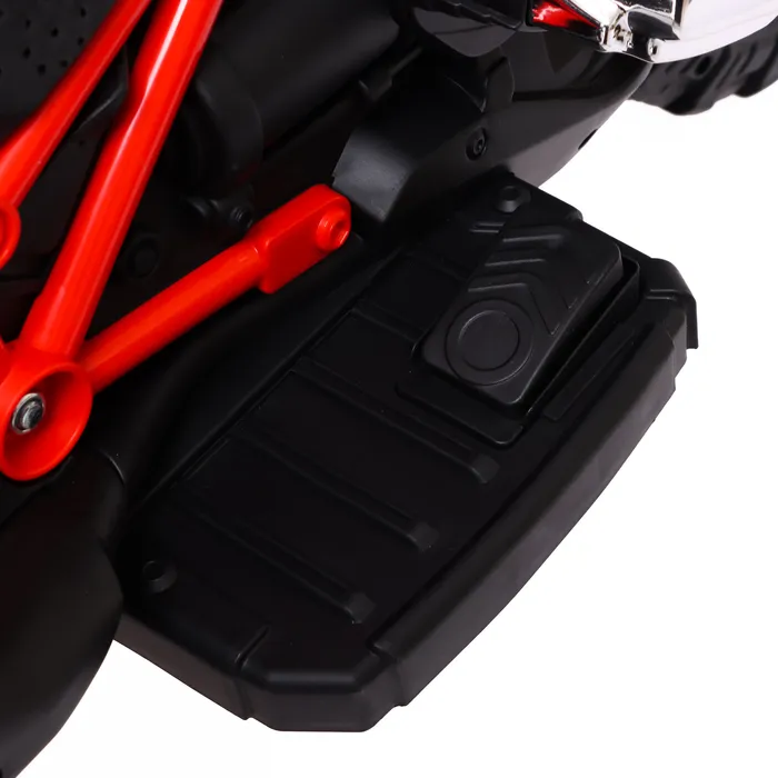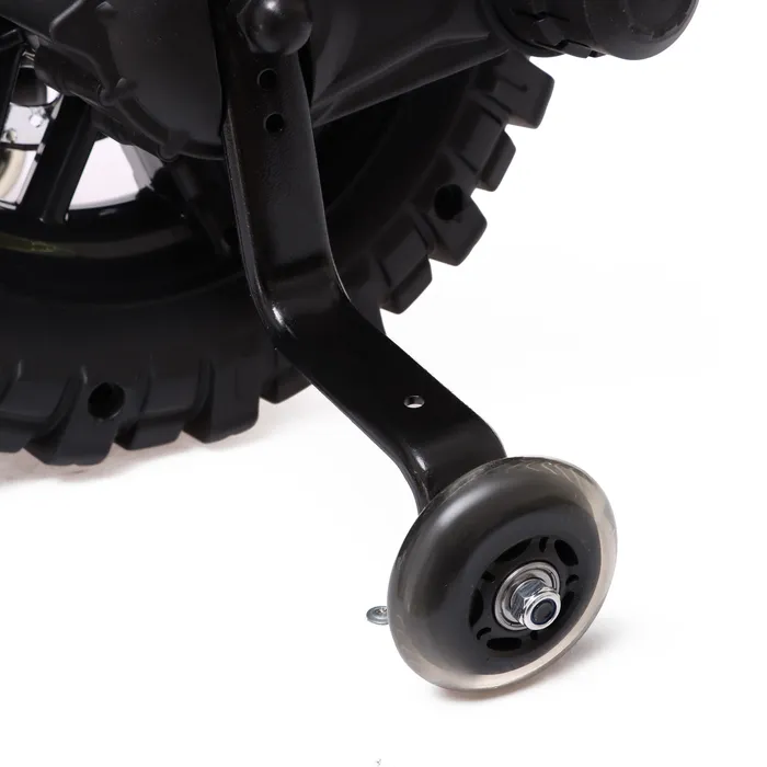 - Один мотор, два аккумулятора: конструкция обеспечивает стабильную работу и простое управление. Ребёнок сможет легко освоить мотоцикл уже с первых минут.