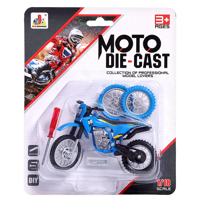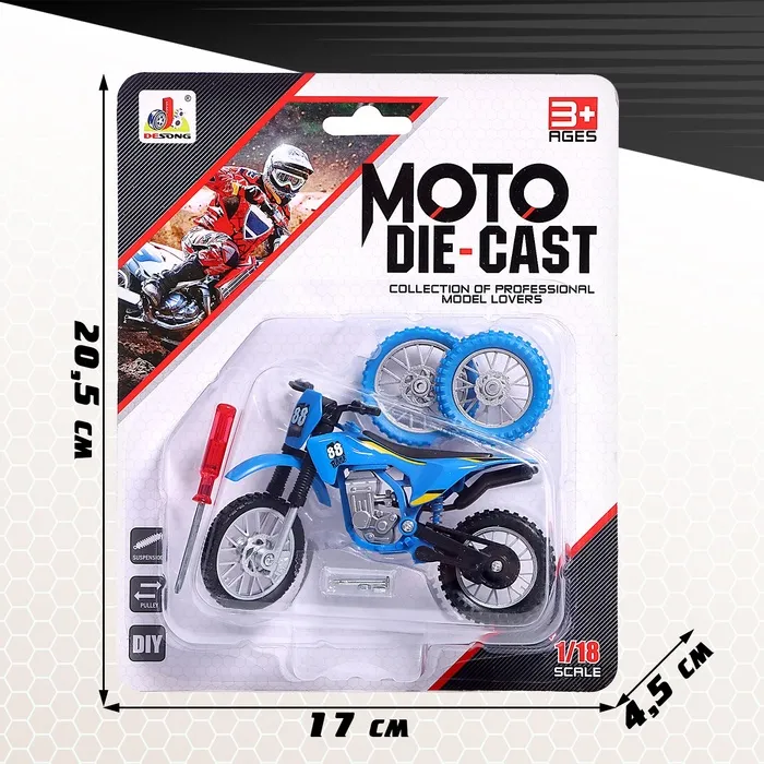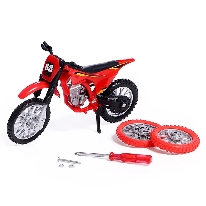 Мотоцикл «Эндуро», металлический, со сменными колёсами, 1:18, цвет МИКС — Характеристики