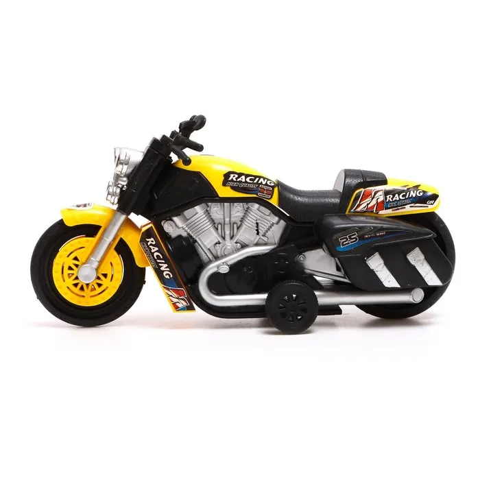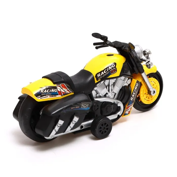 - Механизм с инерцией: оттяни мотоцикл назад, и он помчится вперёд, как настоящий гоночный байк. Никаких батареек – только чистая энергия игры!
