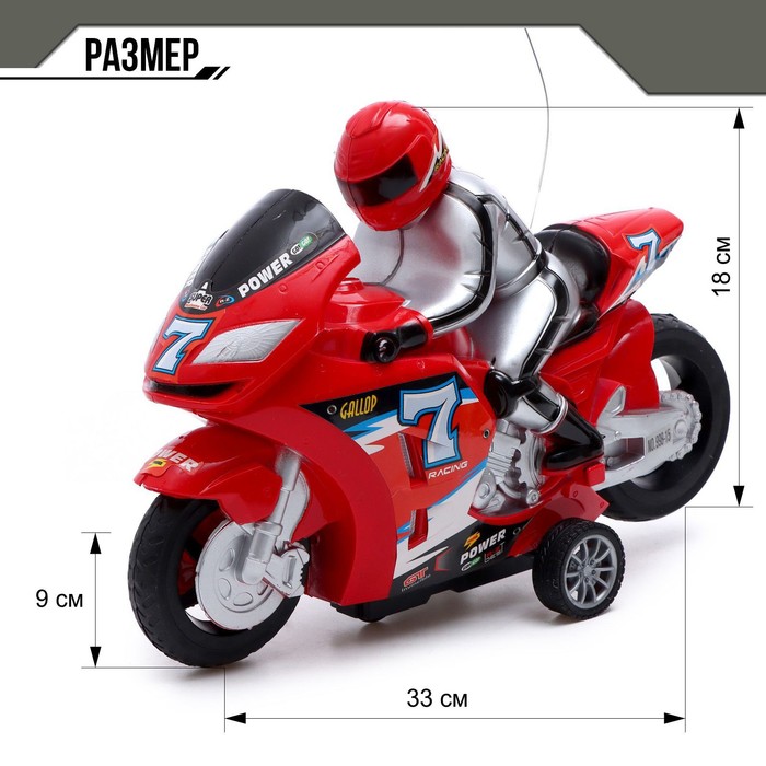 Мотоцикл радиоуправляемый «Спортбайк», работает от батареек, цвет красный — Характеристики
