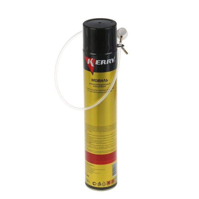 Большой мовиль KERRY KR-948 предназначен для антикоррозионной защиты скрытых полостей кузова автомобиля (порогов, корпусов дверей, стоек, лонжеронов, пола салона, багажника и т. п.). Обеспечивает временную антикоррозионную защиту наружных поверхностей автомобиля (днища, порогов, арок колес и т. п.). Устойчив к воздействию воды и водных растворов солей, применяемых для обработки дорог. Консервант допускается наносить на ржавую и влажную поверхность, а также на старые антикоррозионные покрытия.