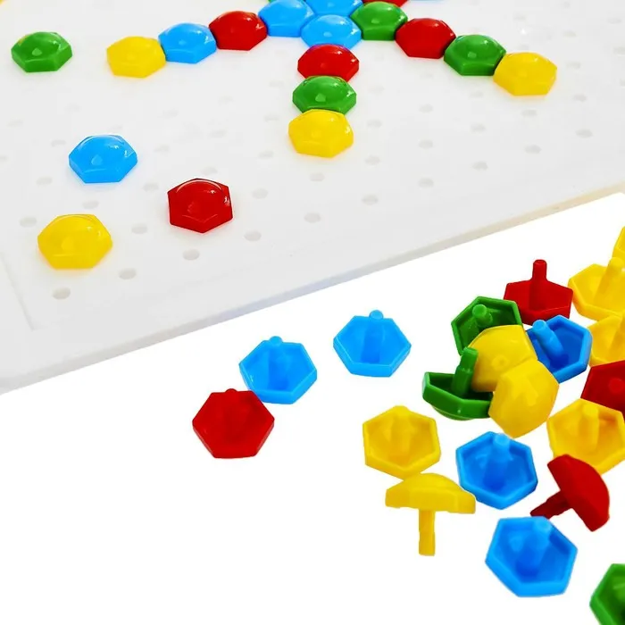 Мозаика — особый вид конструирования на плоскости. Она помогает детям сначала научиться работать по образцу, а затем воплотить свои собственные идеи и фантазии. Зная преимущества этой игрушки, можно также использовать её для игр, например точки, где необходимо окружить фишку соперника своими фишками, следя за правилами и ходя по очереди.