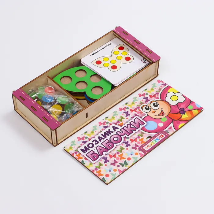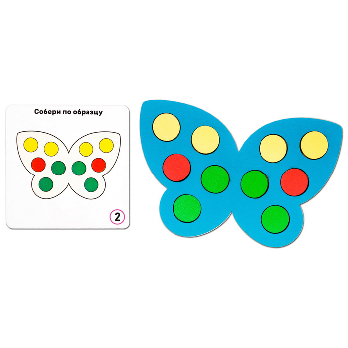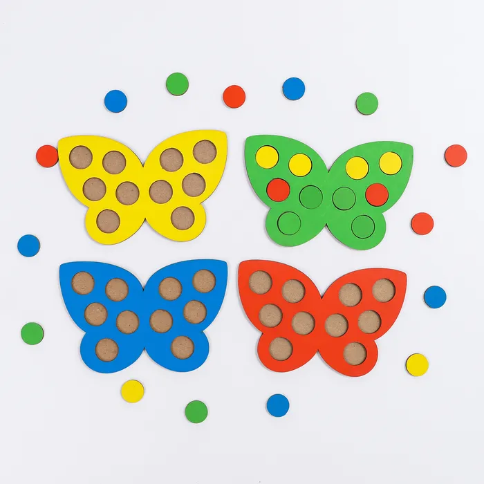 Мозаика «Бабочки» — игрушка для детей, которая познакомит ребёнка с формами и цветами, а также поможет развить мелкую моторику.