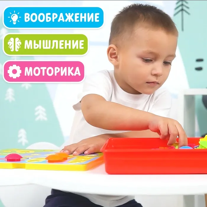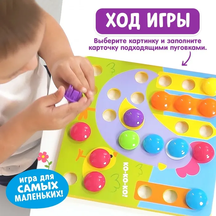 «Весёлые пуговки. Ферма» — настольная игра-мозаика для детей от 3 лет. Яркие детали привлекут внимание непоседы и прокачают мелку моторику. В набор также входит брошюра для родителей, в которой вы найдёте 10 увлекательных и развивающих игр.