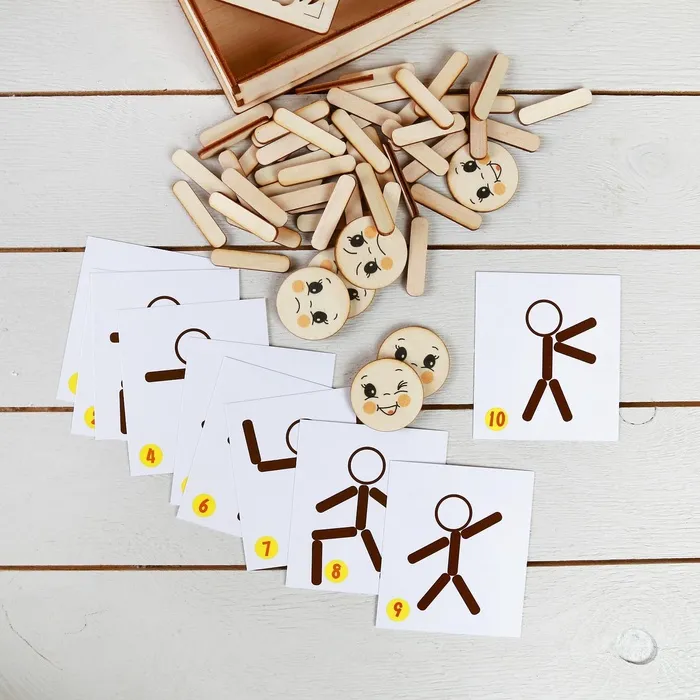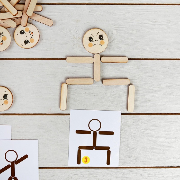 - Предложите ребёнку составить силуэты человечков, изображенных на карточках.