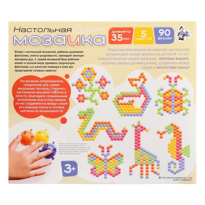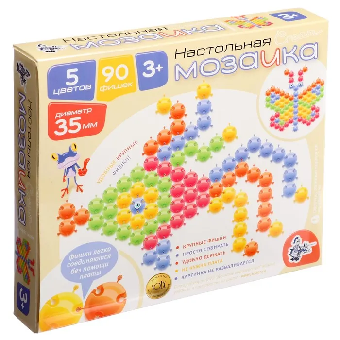 Мозаика настольная с крупными фишками, 90 элементов, d=35 мм — Характеристики