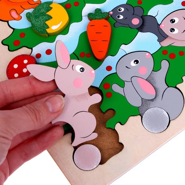 Мозаика «Лесная красавица» — двухуровневый красочный деревянный пазл для детей дошкольного возраста. Основное поле состоит из 38 элементов. Мозаика дополнена 7 фигурами в виде ёлочных игрушек, их расположение можно менять, создавая ёлке новый праздничный наряд.