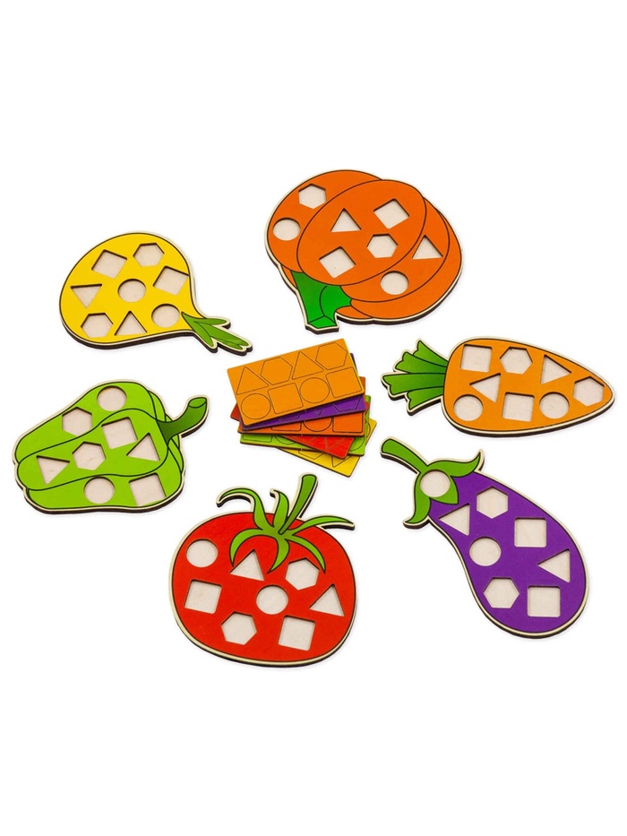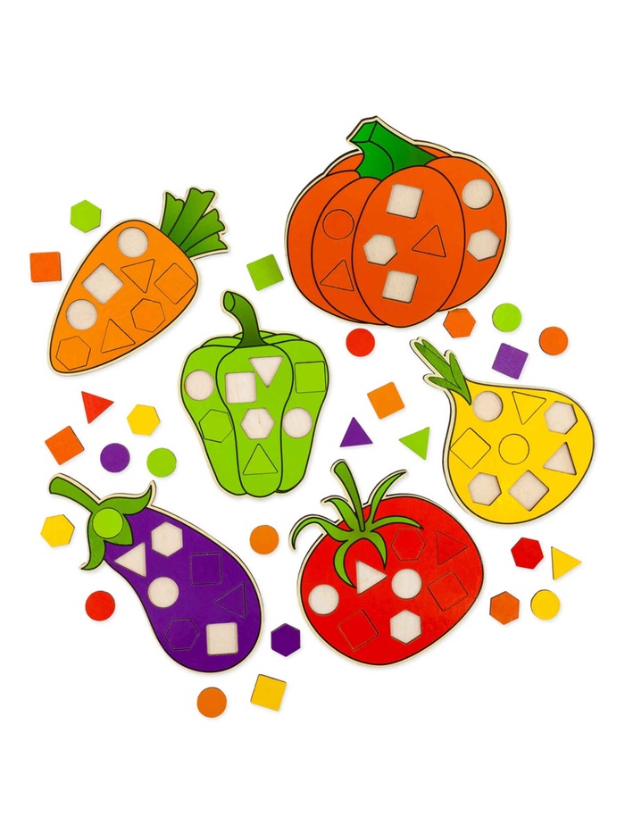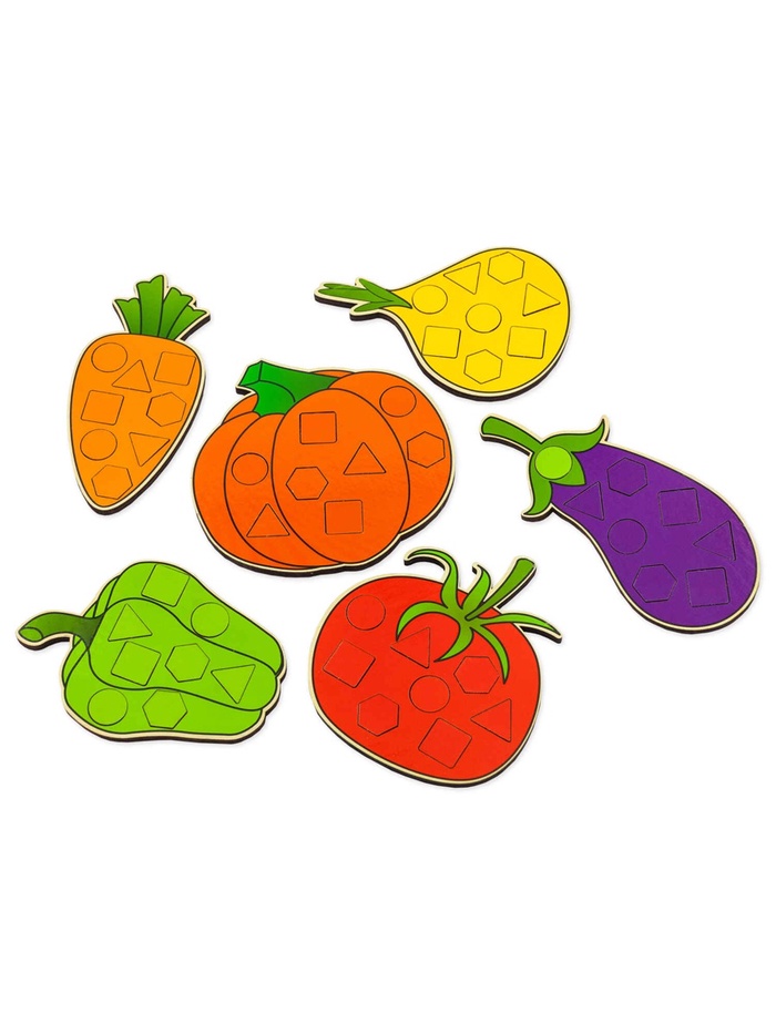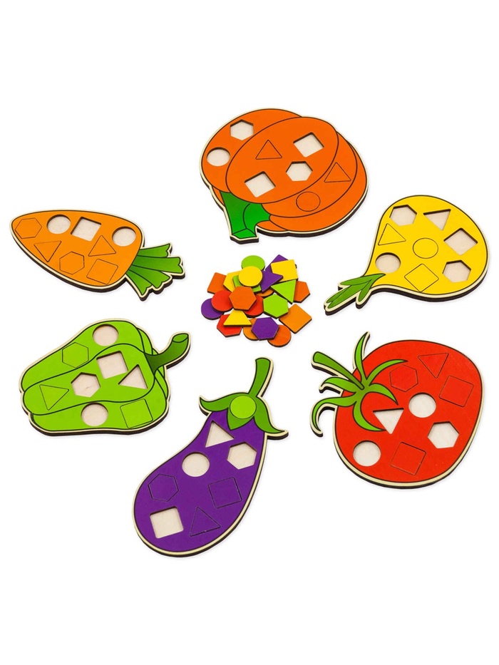 Деревянная мозаика «Овощи» — это увлекательная развивающая игра для малышей от 1 года. С её помощью ребёнок изучает цвета, геометрические фигуры и учится собирать пазлы в виде ярких овощей: помидора, моркови, перца, баклажана, тыквы и лука. Игрушка сочетает обучение и творчество, помогая малышу расти и познавать мир через игру.