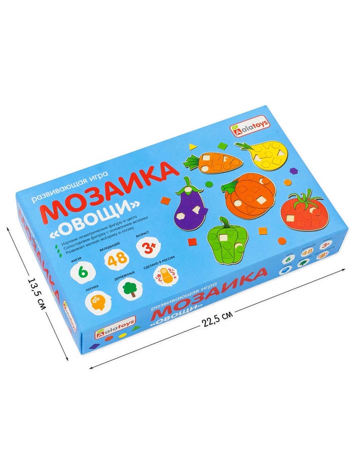 «Овощи» помогает ребёнку освоить важные навыки: развивать логическое мышление, сенсорику и координацию движений. Играя с мозаикой, малыш учится различать цвета, формы и текстуры, тренирует мелкую моторику и двигательную активность. Задачи по сборке стимулируют воображение и формируют базовые представления о последовательности действий. Это не только занимательное занятие, но и источник новых знаний, которые формируют когнитивные навыки. Каждый этап игры стимулирует самостоятельность и уверенность в своих силах.