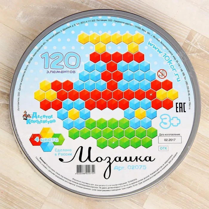 Мозаика шестигранная, 120 элементов (круглая пласт.коробка) — Характеристики