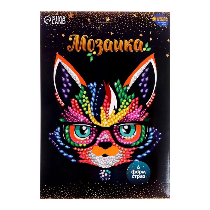 Мозаика стразами «Кот в очках». Набор для творчества - яркая картина своими руками!