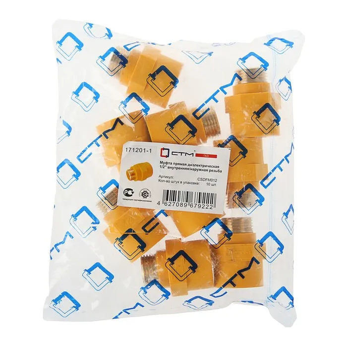 Прямая диэлектрическая муфта с внутренней/наружной резьбой — неразборный фитинг, являющийся изолирующим препятствием для прохождения блуждающих токов по газопроводным магистралям.