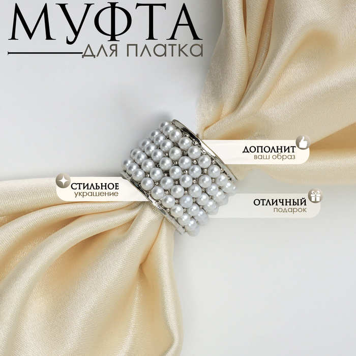 Элегантная муфта для платка - это идеальный аксессуар для женщин, которые ценят стиль и комфорт. Сделанная из высококачественного металла и украшенная жемчугом, эта муфта добавит изысканности любому образу.