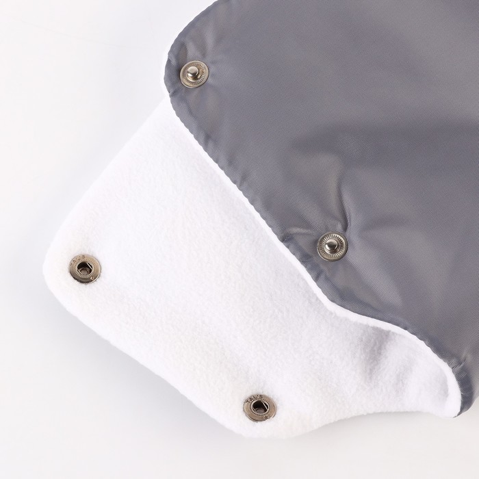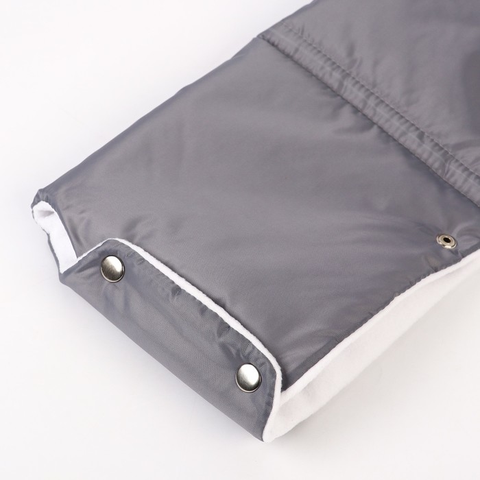 Тёплый аксессуар согреет руки родителей во время зимних прогулок с малышом. Универсальная муфта подходит к любой коляске или санкам. Оберните вокруг ручки и застегните кнопки. Изделие надёжно защитит от холода и ветра.