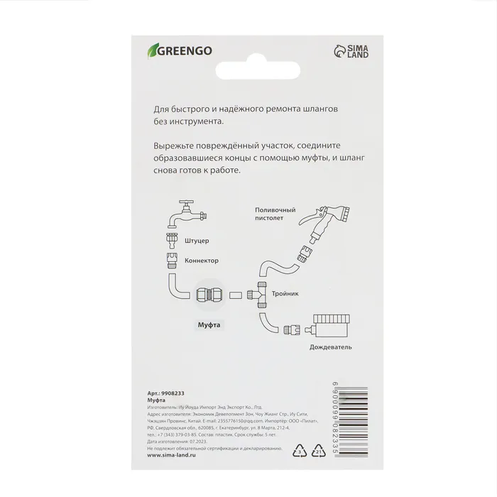 Если поливочный шланг вдруг порвался, потрескался и теперь сочится водой в самых неожиданных местах, не торопитесь покупать новый. Возьмите ремонтную муфту, аккуратно вырежьте поврежденный кусок и вставьте два конца шланга в крепления. Теперь можете вновь приступать к поливочным работам.