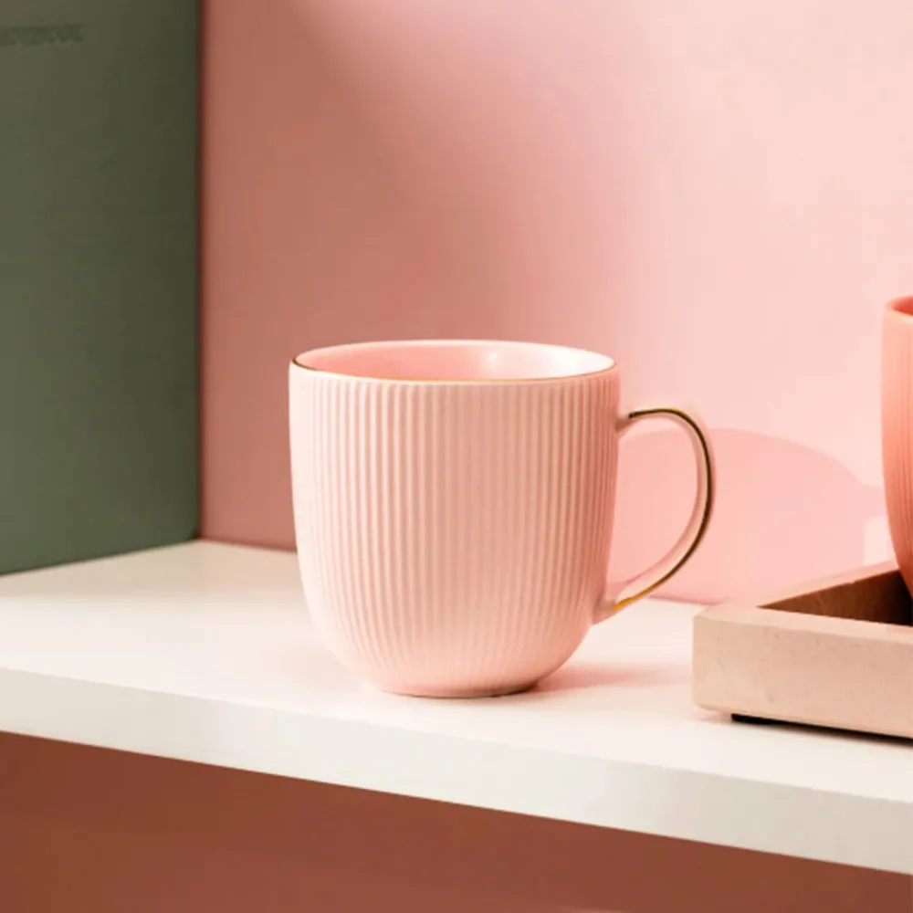 Эта потрясающая пастельно-розовая кружка имеет декоративную рифленую поверхность и изящные золотые акценты. Это не просто кружка, а красивое дополнение к вашей коллекции посуды и стильный выбор для наслаждения горячими напитками.