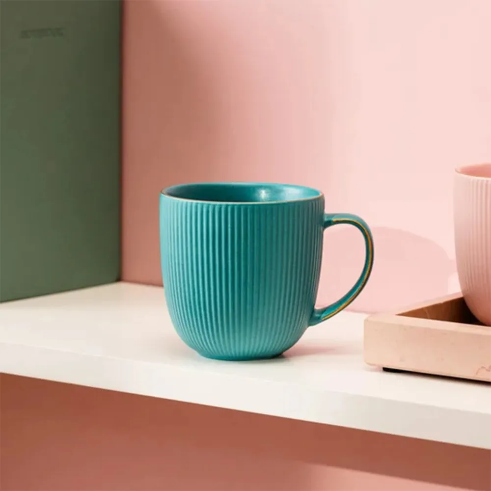 Эта великолепная кружка с бирюзовым оттенком имеет декоративную рифленую поверхность и тонкие золотые акценты. Это больше, чем просто кружка – ее яркий цвет и элегантный дизайн делают ее привлекательным дополнением к вашей коллекции посуды. Идеальный выбор для стильного наслаждения горячими напитками.