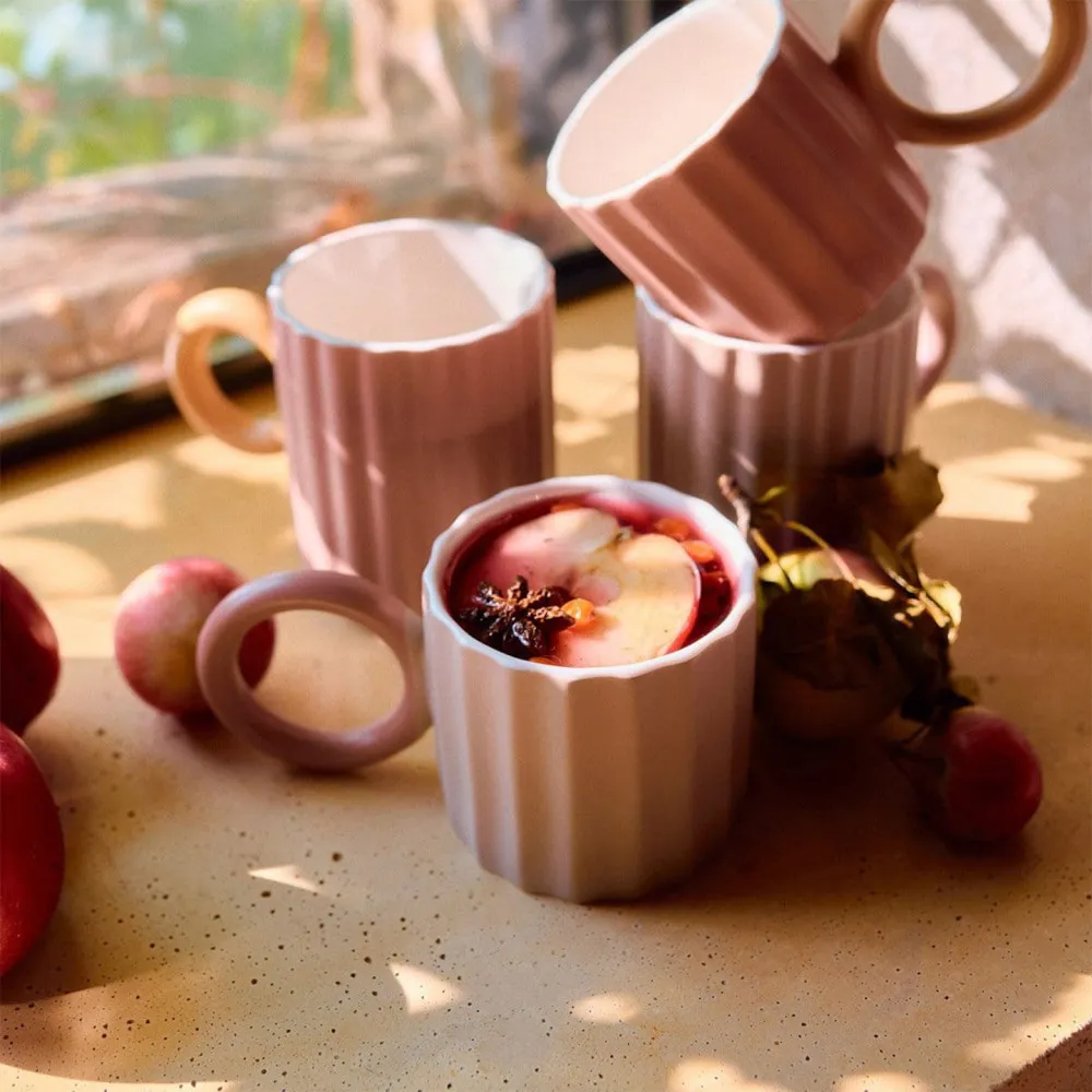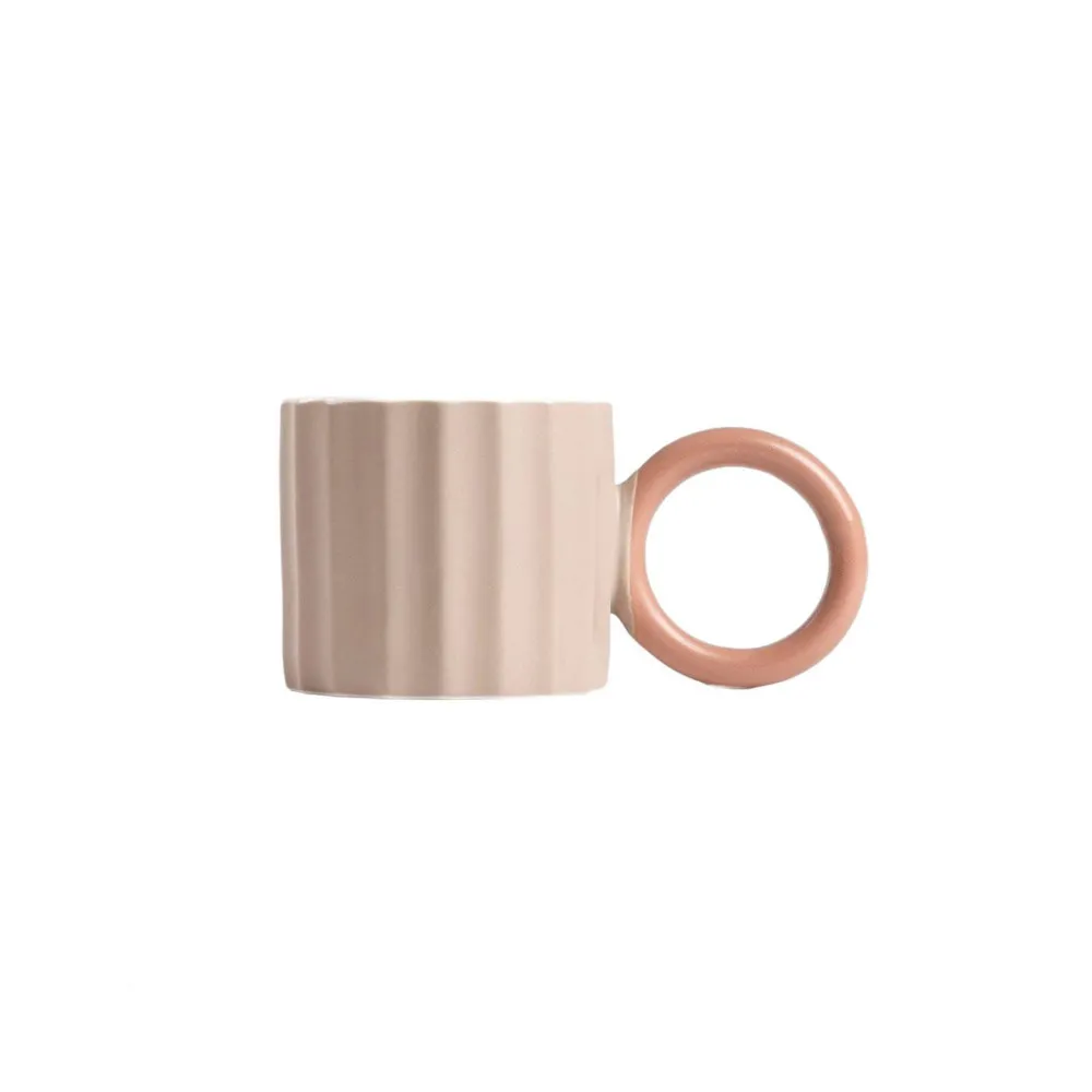 – Кружка с нежным бежевым корпусом и игривой розовой ручкой
