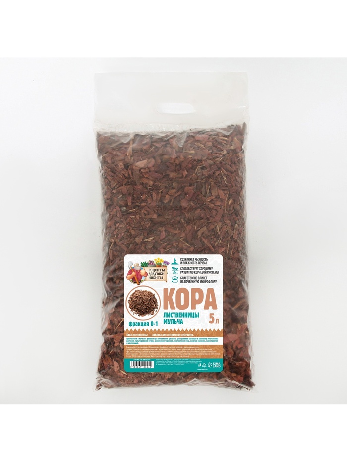 Укрывание почвы корой лиственницы не позволяет испаряться влаге и защищает от эрозии почвы. При этом не происходит образование почвенной корки, что освобождает от необходимости рыхления.