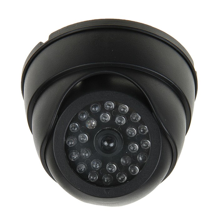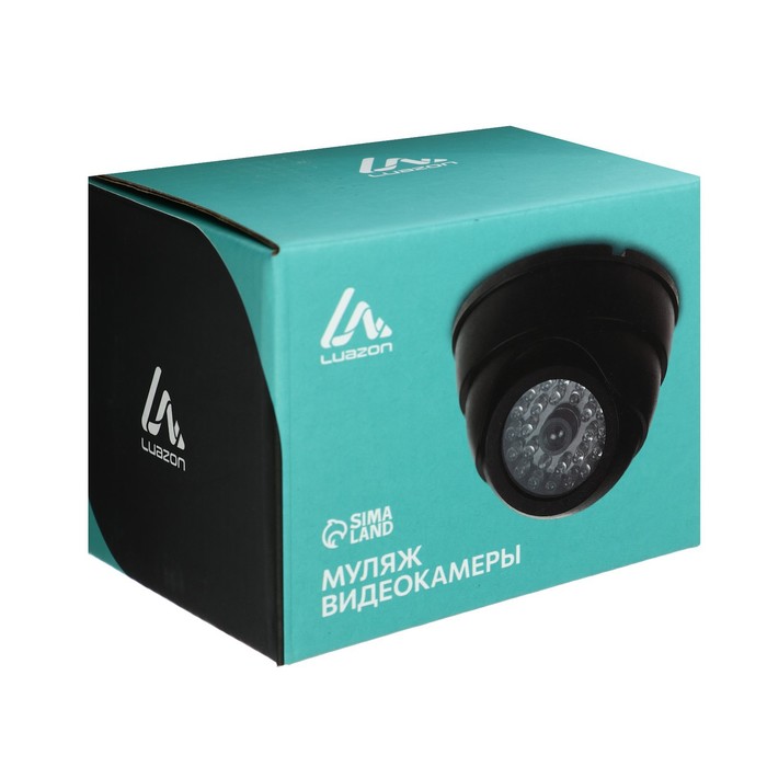 Устройство выполнено в виде купольной камеры и оснащено светодиодным индикатором, который имитирует работу настоящего прибора. Муляж работает от двух батареек и легко крепится к потолку. В комплект входят шурупы и пластмассовые дюбели для установки.