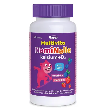 Медвежонок со вкусом ягод Multivita NamiNalle Kalsium +D3 содержит: 100 мг кальция и 5 мкг витамина D3.