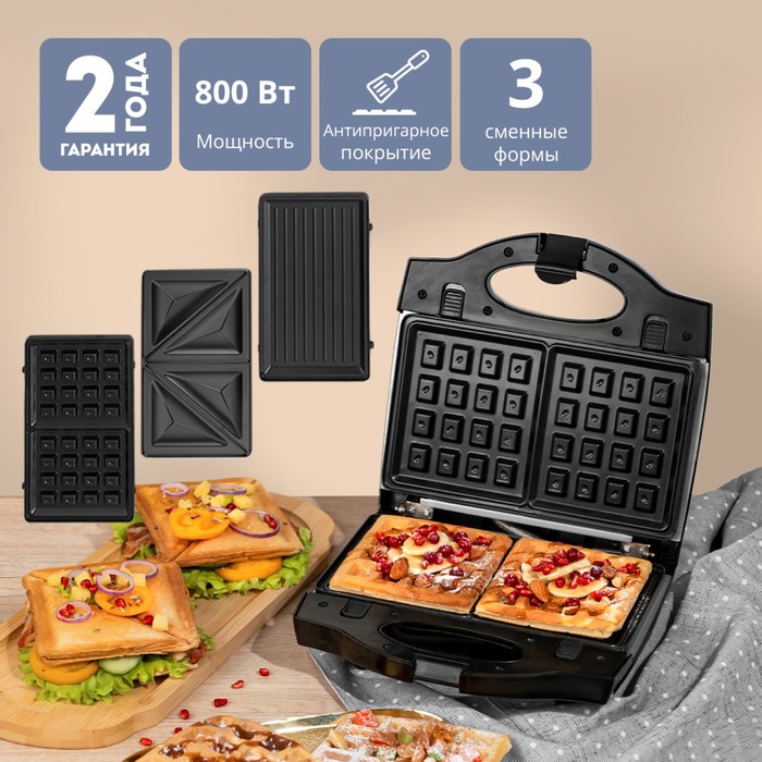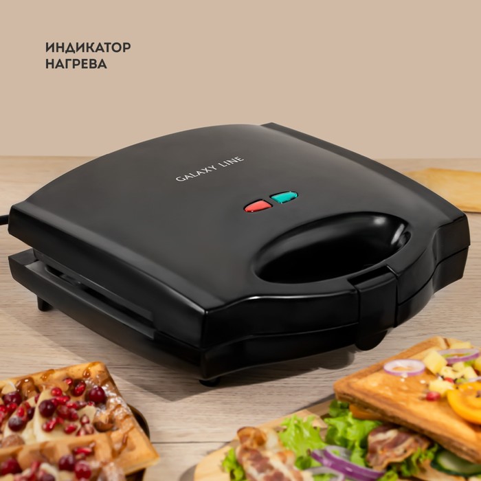Мультипекарь Galaxy GL 2959, 800 Вт, сэндвич, гриль, венские, антипригарное покрытие, чёрный — Характеристики