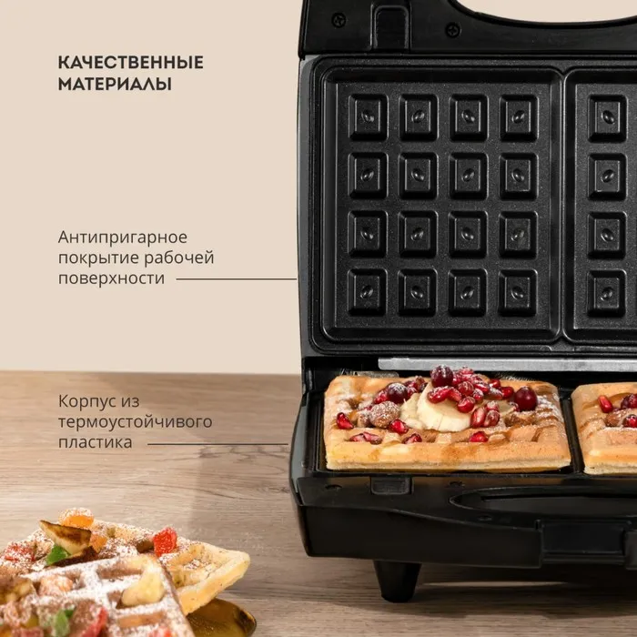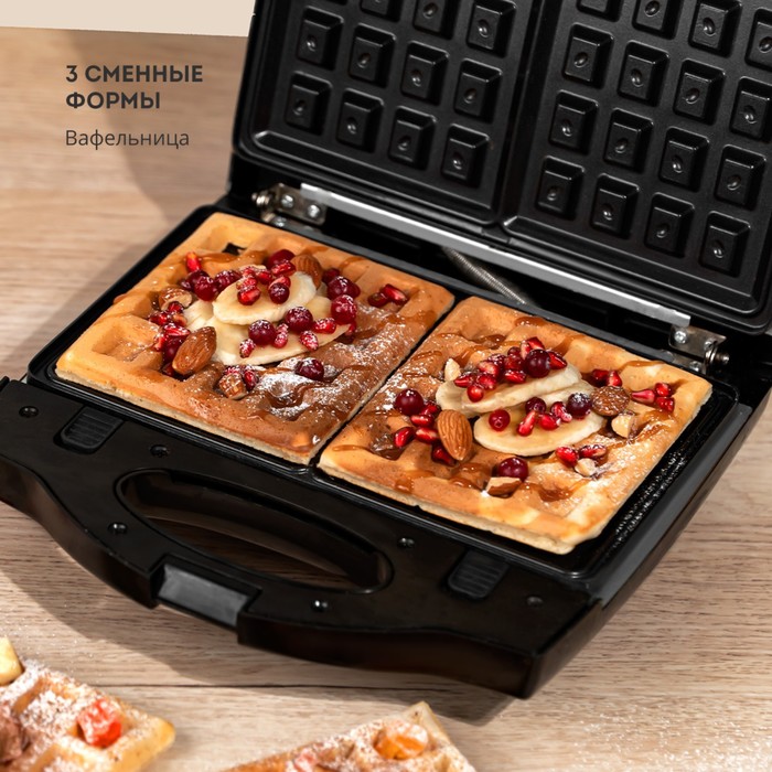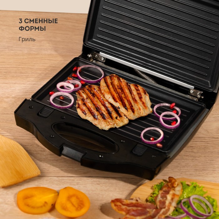 Сэндвич-тостер со сменными формами GALAXY LINE GL2959 - универсальная модель для приготовления горячих бутербродов с различными начинками, быстрого поджаривания плоских кусков хлеба, мяса, рыбы на гриле, а также вафель. Благодаря 3 двойным сменным формам с фиксатором вы сможете быстро приготовить различные блюда, закуски и десерты. Сэндвич-тостер оснащен специальным японским антипригарным покрытием рабочих поверхностей «Silkware», которое исключает прилипание продуктов и не требует большого количества масла. Антипригарная поверхность легко чистится, обладает высокой стойкостью к температурным перепадам и механическим воздействиям. Корпус сэндвич-тостера GALAXY LINE GL2959 выполнен из жаропрочного пластика, он безопасен при контакте с пищевыми продуктами. Прорезиненные ножки препятствуют скольжению прибора во время эксплуатации и надежно фиксируют его на рабочей поверхности.