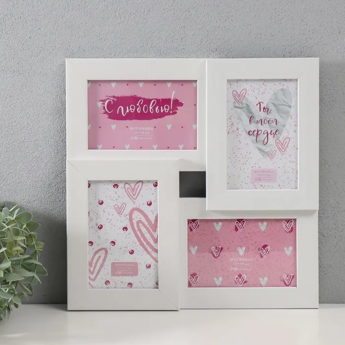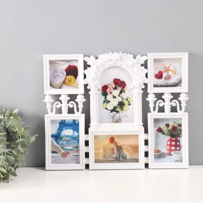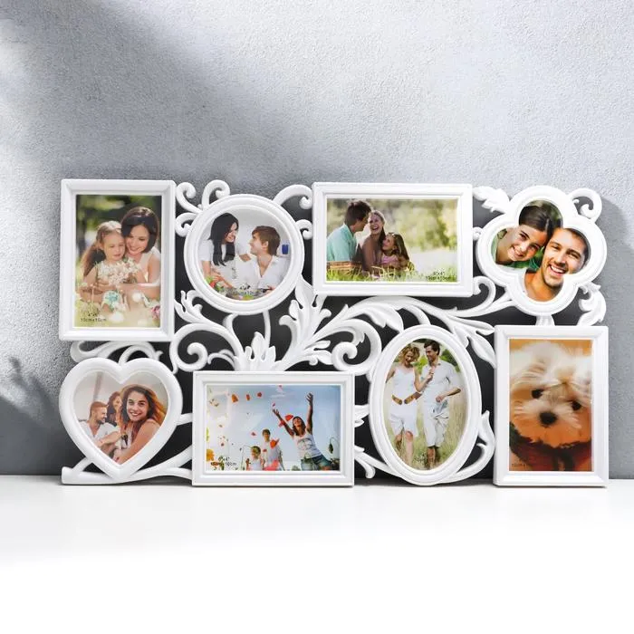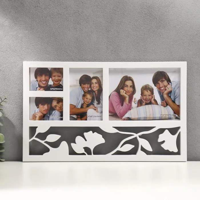 Мультирамка "СЕМЬЯ" коллаж на 8 фото 10х15 см, белый с золотым — Характеристики