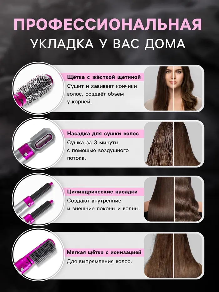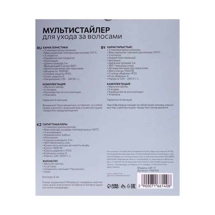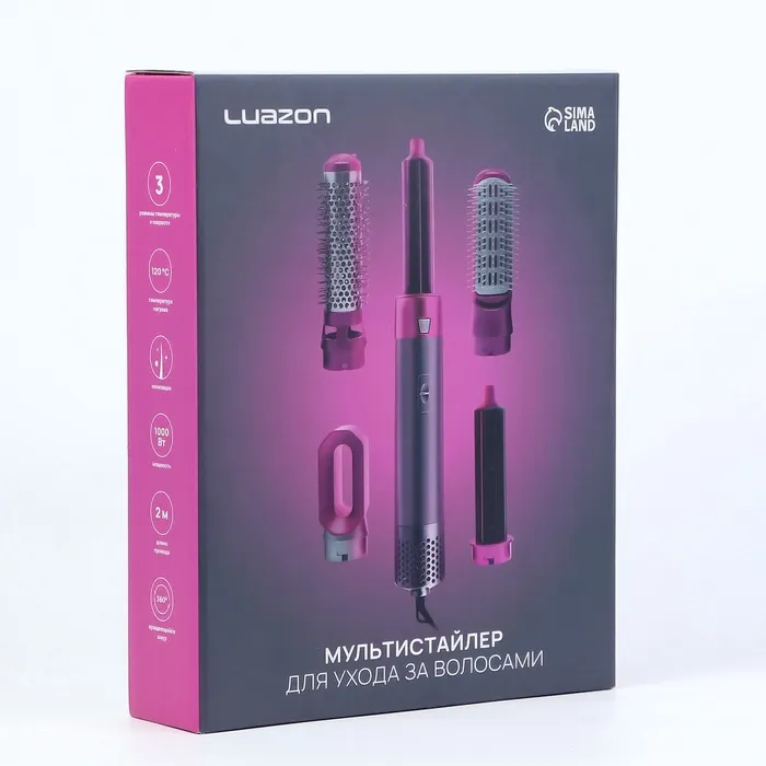 Мультистайлер Luazon LW-17, 1000 Вт, керамическое покрытие, 5 насадок, до 120 °C — Характеристики