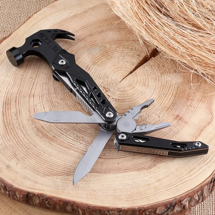 - Универсальность – 10 функций: Этот многофункциональный инструмент включает в себя нож, молоток, плоскогубцы и многое другое, позволяя вам справляться с самыми разными задачами, не имея при себе целый набор инструментов.
