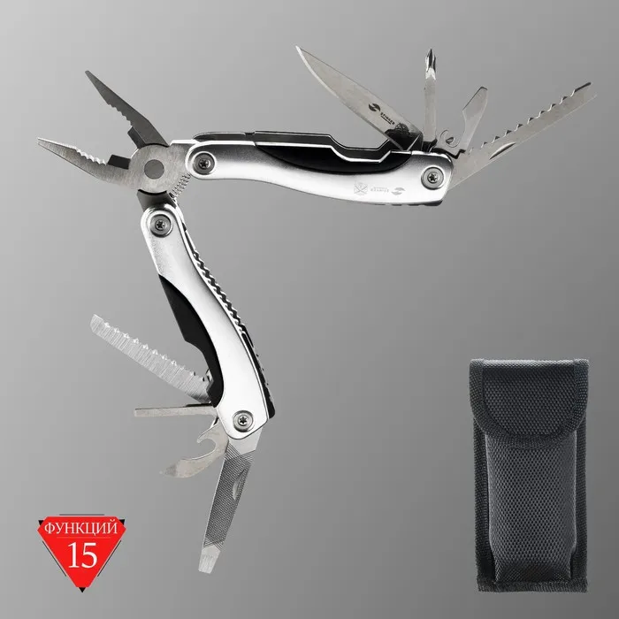Мультитул Stinger с нейлоновым чехлом, 15 функций, сталь, алюминий, серебристый — Характеристики