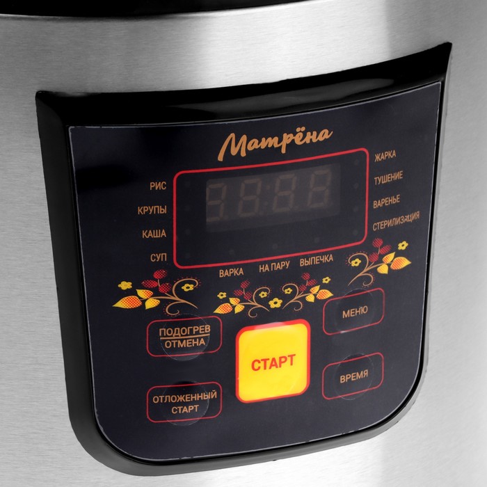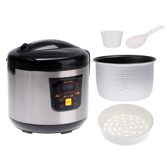Мультиварка МАТРЁНА MA-011 — это многофункциональный и удобный помощник на вашей кухне. Оснащена ярким дисплеем, который облегчает настройку и управление процессом готовки. Внутренняя чаша с антипригарным покрытием обеспечивает лёгкую очистку и предотвращает пригорание пищи. Мультиварка поддерживает функцию отложного старта, позволяя заранее настроить время начала готовки, а функция поддержания температуры сохраняет блюдо горячим до подачи. МАТРЁНА MA-011 предлагает 11 различных программ, которые помогут вам приготовить разнообразные блюда, от супов до десертов, с минимальными усилиями.