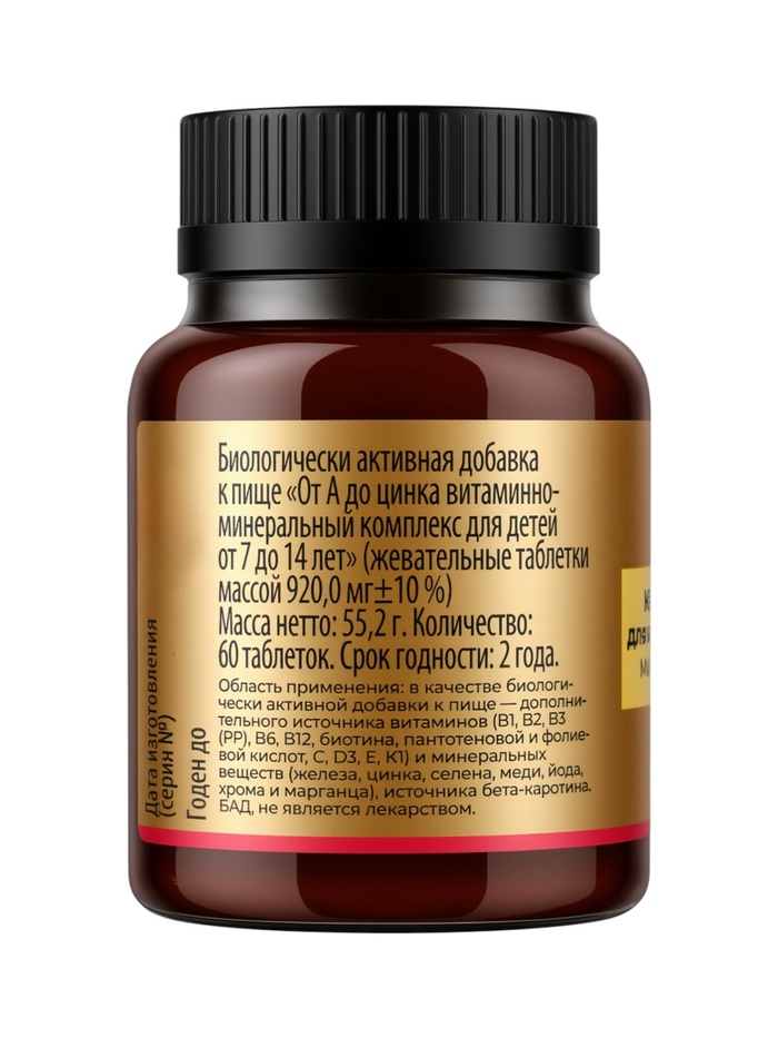 Мультивитамины TETRALAB для детей 7–14 лет, жевательные, укрепление иммунитета и поддержка роста, 60 таблеток — Характеристики