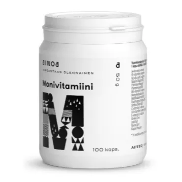 Ainoa Monivitamiini - универсальный мультивитаминный препарат. Содержит витамины группы В, растительный витамин D, цинк и йод. Витамин D необходим для усвоения кальция. Витамины группы В помогают уменьшить усталость и утомляемость. Железо способствует нормальной выработке эритроцитов и гемоглобина.