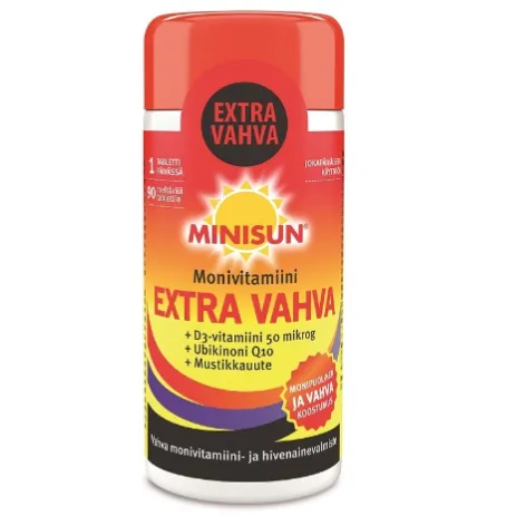 Minisu multivitamin Extra Strong - содержит 16 витаминов и микроэлементов, а также убихинон Q10 и экстракт черники.