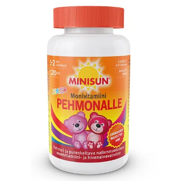 Minisun Pehmonalle Junior - это мультивитамин со вкусом лесных ягод и микроэлементами в форме мишек.