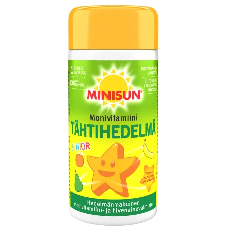 Minisun Tahtihedelma Junior - мультивитаминный и микроэлементный препарат в форме звезды с фруктовым вкусом для детей и подростков.