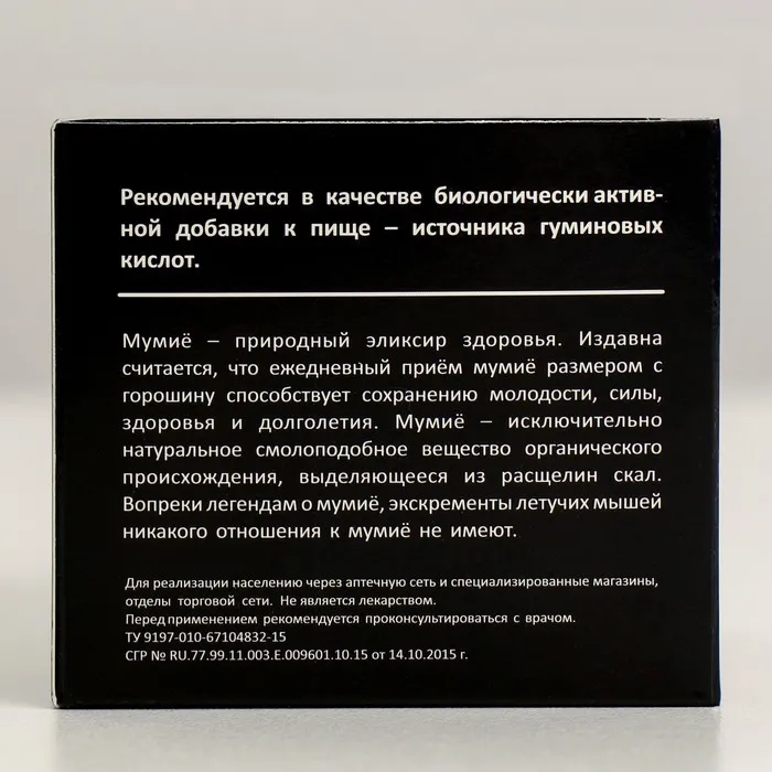 Издавна считается, что ежедневный приём мумиё размером с горошину способствует сохранению молодости, силы, здоровья и долголетия.