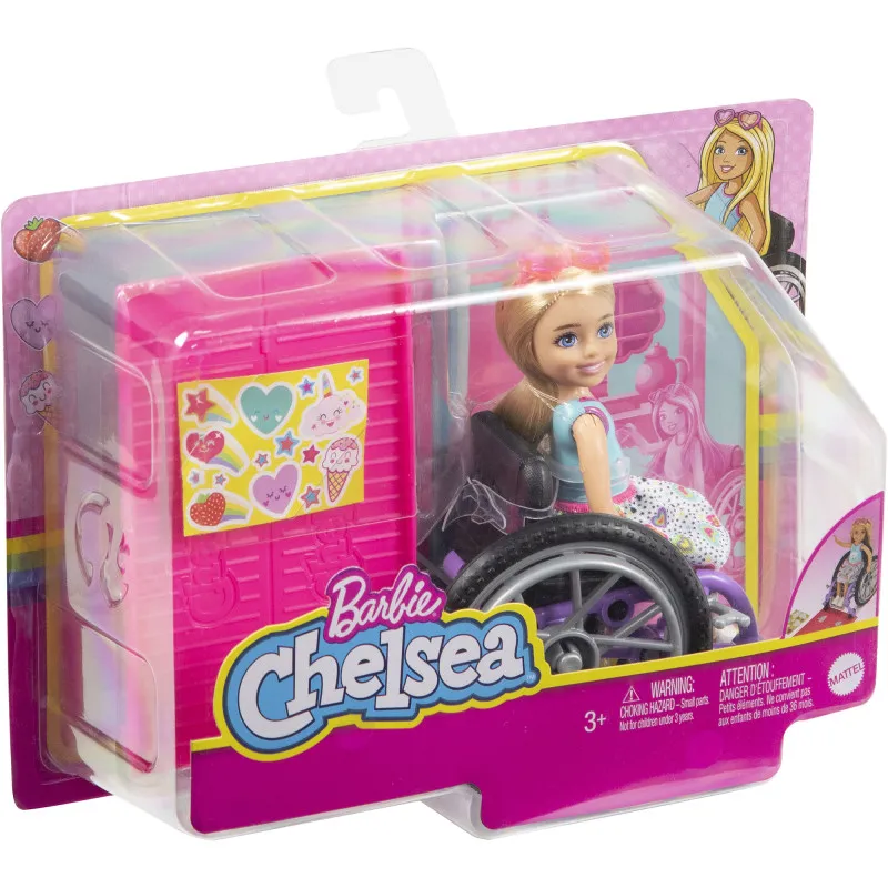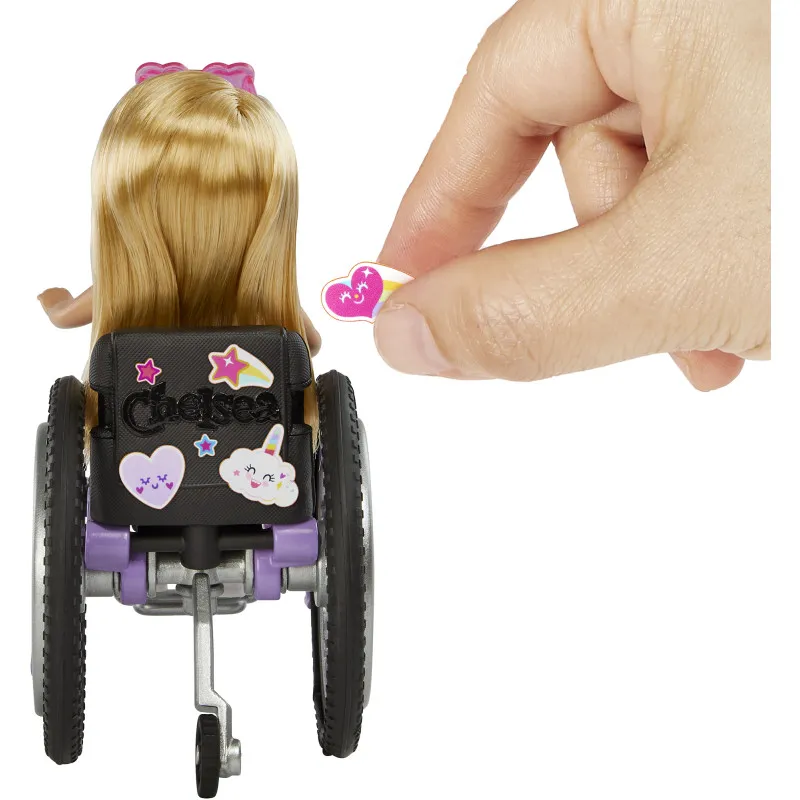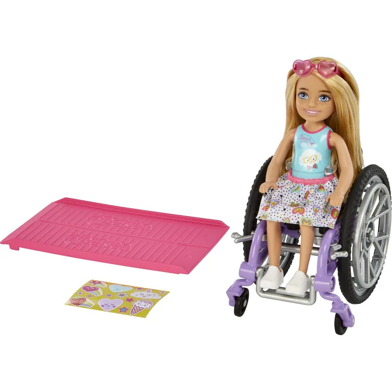 Младшая сестра Барби, Челси, легко передвигается с помощью своего стильного инвалидного кресла. Кресло имеет великолепные детали и может быть украшено с помощью прилагаемых наклеек. В комплект также входит рампа для беспрепятственного передвижения.