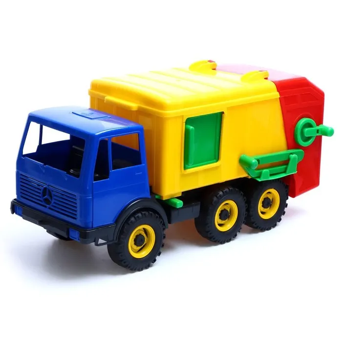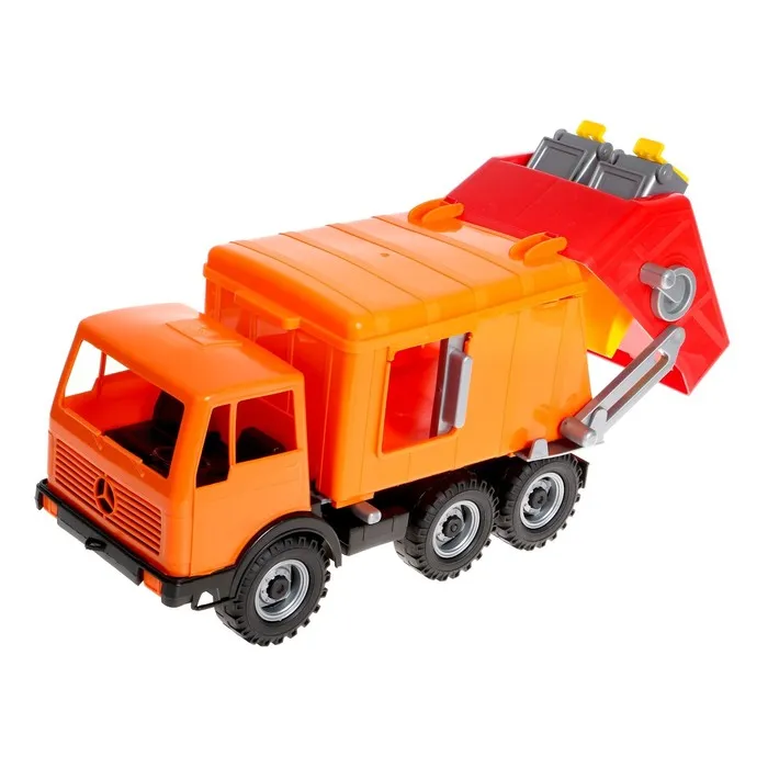 Убери город до блеска! Мусоровоз «Мерседес» – это яркая и детализированная игрушка, которая перенесёт ребёнка в мир городской техники. Оранжевый грузовик с механизмом загрузки мусора готов к работе: он поднимает мусорные баки, перевозит их содержимое и выгружает в конце маршрута. Прочный пластик и реалистичный дизайн делают его идеальным выбором для маленьких фанатов спецтехники.